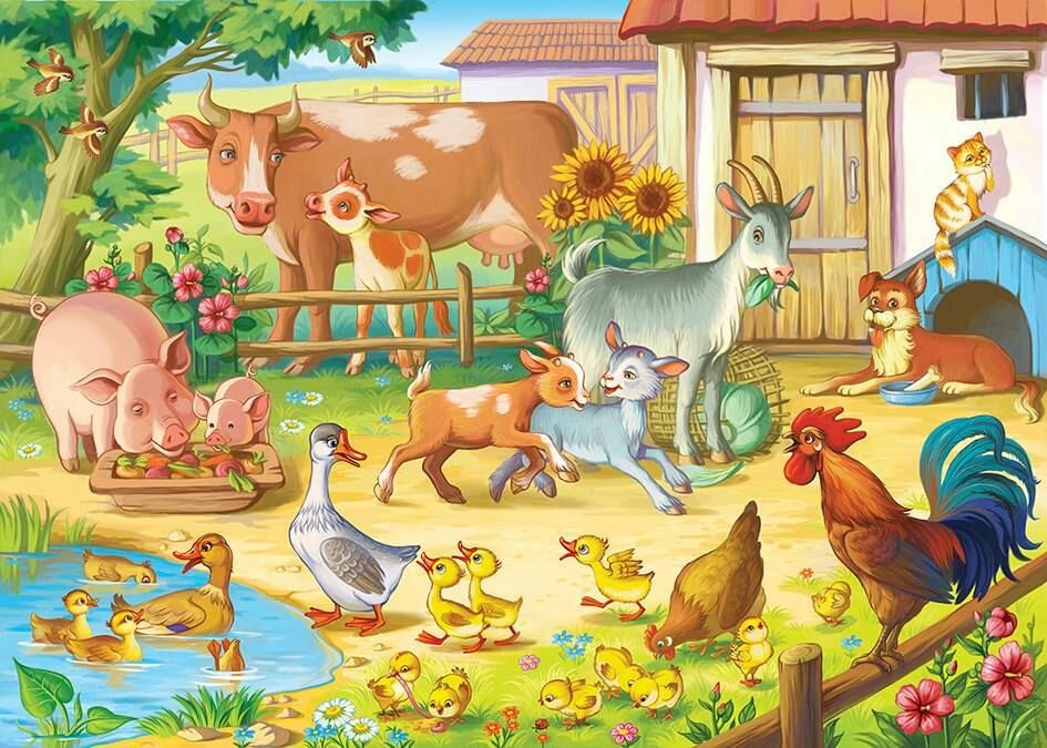 картинках, в игрушках домашних животных (кошку, собаку, корову, курицу и др.) и